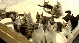 A-und B-Wurf Oben: Bailey, Amelie Von Links nach Rechts: Blue Bajou, Aimee, Aileen, Avicii, Bellé, Belana, Buffy, Batida de Coco, Bajazzo, Bagheera |
