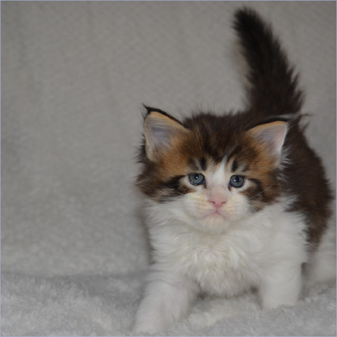 Bajazzo ist ein Junge und hat die Farbe black mc/white, er hat ein schönes Liebhaberzuhause gefunden.